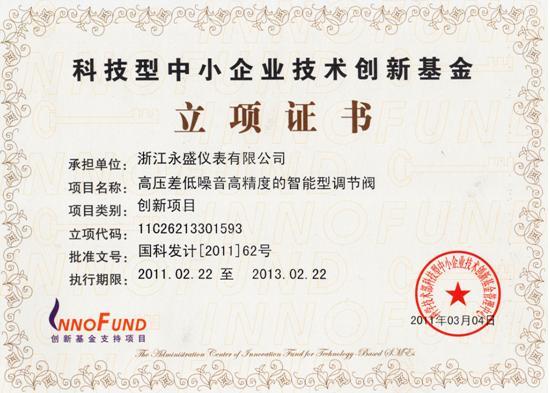 “高壓差低噪音高精度的智能型調(diào)節(jié)閥”被列為創(chuàng)新基金項(xiàng)目