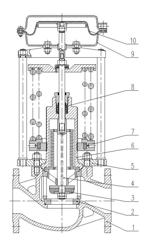 購買咨詢細(xì)節(jié)說明ZZY系列自力式壓力調(diào)節(jié)閥是不需要任何外加能源,利用被調(diào)介質(zhì)自身能量而實現(xiàn)自動調(diào)節(jié)的執(zhí)行器產(chǎn)品。同時又具有節(jié)約能源,壓力設(shè)定值在運行中可隨意調(diào)整,采用快開流量特性,動作靈敏、密封性能好,介質(zhì)壓力穩(wěn)定,調(diào)節(jié)精度高,泄漏量小等優(yōu)點??蓮V泛用于石油、化工、電力、冶金、食品、輕紡、機械制造與居民建筑樓群等各種工業(yè)設(shè)備中用氣體,液體及蒸汽介質(zhì)減壓、穩(wěn)壓(用于閥后調(diào)節(jié))或泄壓、穩(wěn)壓(用于閥前調(diào)節(jié))的自動控制。附設(shè)冷凝器,可在350℃的蒸汽下連續(xù)工作。 該系列產(chǎn)品具有以下特點1、無需外加驅(qū)動能源的節(jié)能自控產(chǎn)品,設(shè)備費用低,適用于爆炸性環(huán)境;2、結(jié)構(gòu)簡單,維護(hù)工作量小;3、設(shè)定點可調(diào)且范圍寬,便于用戶連續(xù)調(diào)整;4、本體取壓,管路安裝方便;5、閥內(nèi)采用壓力平衡結(jié)構(gòu),調(diào)節(jié)靈敏、控制精度高、允許壓差大。 工作原理1、自力式閥后壓力調(diào)節(jié)閥的工作原理:自力式閥后壓力調(diào)節(jié)閥(B型),其初始閥芯的位置在開啟狀態(tài)。當(dāng)閥前壓力P1通過閥芯、閥座的節(jié)流后變?yōu)殚y后壓力P2,P2經(jīng)過導(dǎo)壓管輸入上膜室作用在膜片上,其作用力與彈簧的反作用力相平衡時的閥芯位置決定了閥門的開度,從而控制閥后的壓力。當(dāng)閥后壓力P2增加時,P2作用在膜片上的作用力也隨之增加。此時,膜片上的作用力大于彈簧設(shè)定的反作用力,使閥芯關(guān)向閥座位置,導(dǎo)致閥的開度減小,P2降低,直到膜片上的作用力與彈簧的反作用力相平衡為止,從而使P2降為設(shè)定值。同理,當(dāng)閥后壓力P2降低時,動作方向與上述相反。2、自力式閥前壓力調(diào)節(jié)閥的工作原理:自力式閥前壓力調(diào)節(jié)閥(K型),其初始閥芯的位置在關(guān)閉狀態(tài)。當(dāng)閥前壓力P1通過閥芯、閥座的節(jié)流后變?yōu)殚y后壓力P2,同時P1經(jīng)過導(dǎo)壓管輸入上膜室作用在膜片上,其作用力與彈簧的反作用力相平衡時的閥芯位置決定了閥門的開度,從而控制閥前的壓力。當(dāng)閥前壓力P1增加時,P1作用在膜片上的作用力也隨之增加。此時,膜片上的作用力大于彈簧設(shè)定的反作用力,使閥芯遠(yuǎn)離閥座位置,導(dǎo)致閥的開度減大,P1降低,直到膜片上的作用力與彈簧的反作用力相平衡為止,從而使P1降為設(shè)定值。同理,當(dāng)閥前壓力P1降低時,動作方向與上述相反。 閥的結(jié)構(gòu)形式圖a)為DN15~100(1/2”~4”)直通單座波紋管平衡型自力式閥后壓力調(diào)節(jié)閥結(jié)構(gòu)圖; 圖b)為DN125~300(5”~12”)籠式套筒平衡型自力式閥后壓力調(diào)節(jié)閥結(jié)構(gòu)圖; 圖c)為DN15~100(1/2”~4”)直通單座波紋管平衡型自力式閥前壓力調(diào)節(jié)閥結(jié)構(gòu)圖; 主要零件常用材料序號零件名稱常用材質(zhì)1閥體WCB、CF8、CF8M2閥座304、3163閥芯軟密封PTFE硬密封304、3164閥桿304、3165壓板20、WCB6閥蓋WCB、CF8、CF8M7調(diào)節(jié)盤458填料PTFE、柔性石墨9膜蓋20、30410膜片NBR、EPDM、FKM 規(guī)格與技術(shù)參數(shù)1、ZZY標(biāo)準(zhǔn)型的主要技術(shù)參數(shù) ??KV﹥7公稱通徑DN(mm)253240506580100125150200250300額定流量系數(shù)Kv11172943701101692754406909601300額定行程L(mm)101420254060執(zhí)行機構(gòu)型式薄膜式(設(shè)定壓力≤0.7MPa)、氣缸式(設(shè)定壓力>0.8MPa)、波紋管式公稱壓力PN(MPa)1.6~10.0、CL150~600固有流量特性快開作用方式壓閉型(控制閥后型)、壓開型(控制閥前型)閥結(jié)構(gòu)型式單座、套筒固有可調(diào)比R30減壓比10:1~1.25:1介質(zhì)溫度(℃)常規(guī)<120℃,加冷凝器≤350℃調(diào)節(jié)精度(%)±10允許泄漏量軟密封Ⅵ級、零泄漏硬密封Ⅳ級、Ⅴ級法蘭連接形式PN1.6MPa按HG/T20592-2009 RF,閥體突面PN≥4.0MPa按HG/T20592-2009 FM,閥體凹面壓力調(diào)節(jié)范圍(KPa)30~60、50~100、80~200、150~250200~400、300~600、700~1100、900~13001200~1800、1600~3000、2500~40002、ZZY標(biāo)準(zhǔn)型的主要技術(shù)參數(shù) ????KV≤7公稱通徑DN(mm)15 ??20 ??25閥座直徑dn(mm)4567810121520額定流量系數(shù)Kv0.020.050.080.120.20.320.50.81.22.03.27注:1、特殊要求可按照客戶指定生產(chǎn),2、法蘭可按ANSI、JIS等法蘭標(biāo)準(zhǔn)制造。 執(zhí)行機構(gòu)形式 閥體、閥內(nèi)件、填料材料的使用溫度·壓力范圍 自力式調(diào)節(jié)閥選型樣本下載