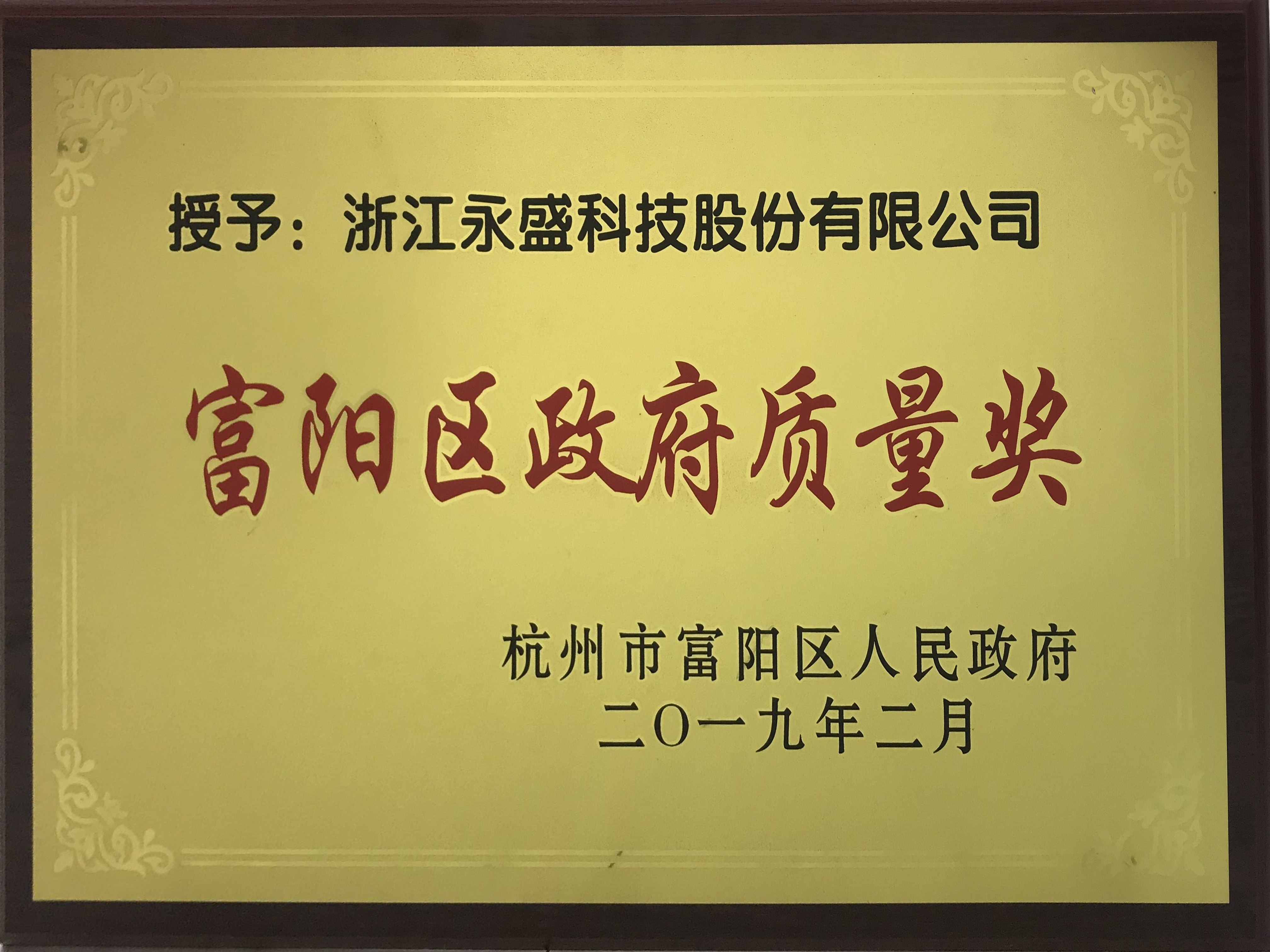 3月28日,富陽舉行全區(qū)經(jīng)濟工作會議及通報2018年度各類先進(jìn)名單。永盛科技榮獲富陽區(qū)“十大工業(yè)優(yōu)秀企業(yè)”、“十佳成長型高新技術(shù)企業(yè)”、“政府質(zhì)量獎”和“浙江名牌產(chǎn)品”。永盛科技走過了22年,今天的成績離不開廣大客戶和社會各界朋友的關(guān)心和支持。永盛科技經(jīng)歷了第一階段1997-2002年初創(chuàng)期!第二階段2003年-2008年成長積累期!第三階段2008年-2013年發(fā)展探索期!第四階段2014年-2019年二次荒野轉(zhuǎn)型升級期!變革、蓄勢、磨煉,從做產(chǎn)品到做好產(chǎn)品,我們將不忘初心砥礪前行。逐夢歲月、攜手共贏、共創(chuàng)美好未來!